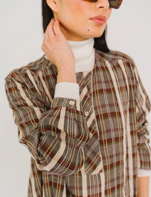 La teinte douce et chaleureuse et les motifs carreaux ajoutent une note de douceur sophistiquée à vos tenues.